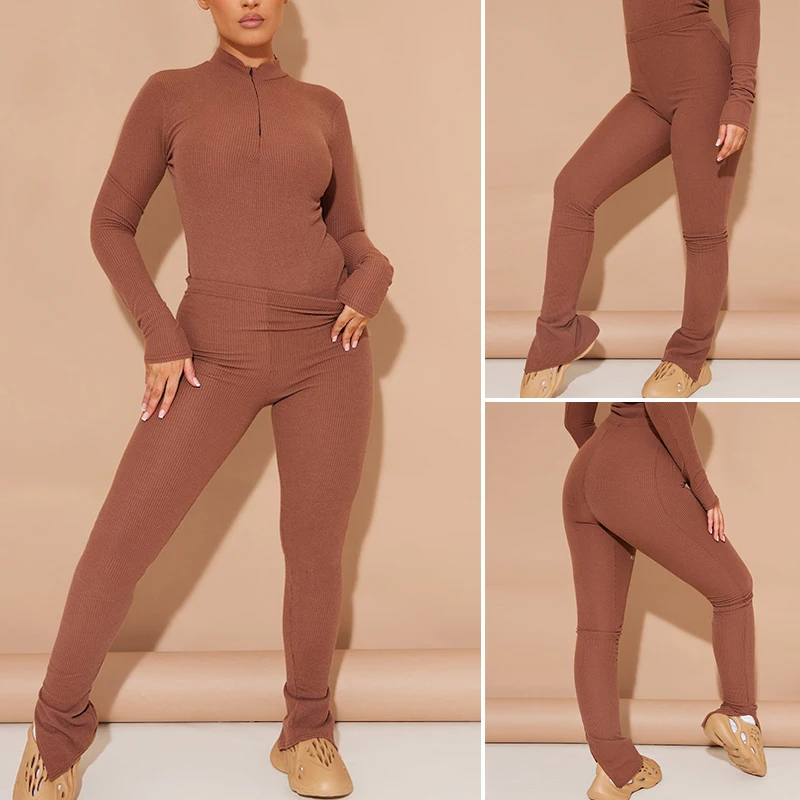 Huili Custom Logo 2 Piece Ribbed Bodysuits High Stretch Sports Lounge Wear Yoga Fitness Gym Legging Loungewear Women Sets